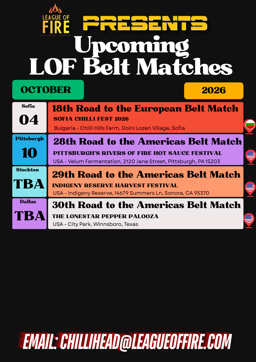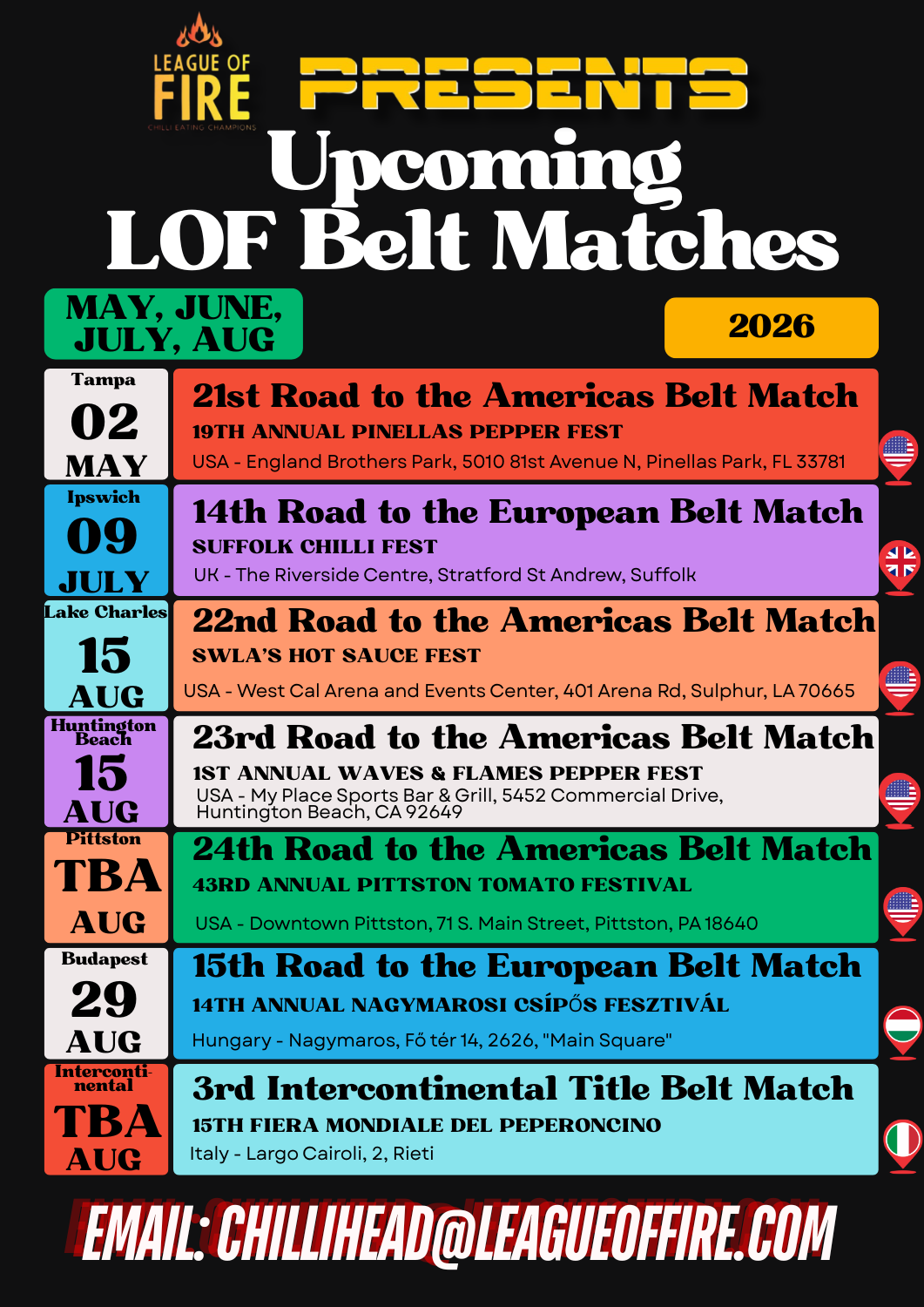 “…[The UK Chilli Queen’s] unbeaten record is in properly officiated chilli-eating contests and is accepted by the League of Fire – the world governing body for competitive chilli-eating.”