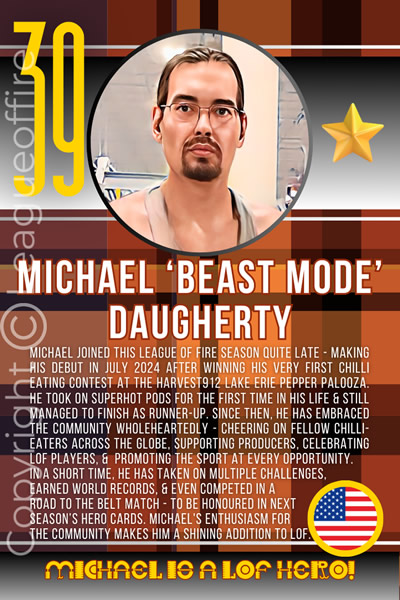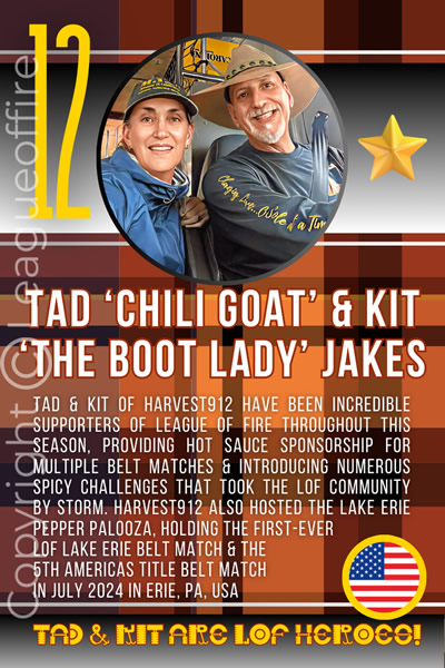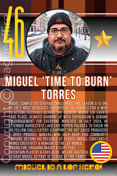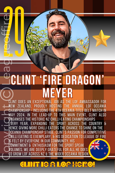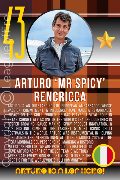 Not only will your amazing efforts in the 2023-2024 World Chilli Community Championship be listed here forever and have its place in the global chilli pepper history books, your achievements will further be paid homage to by way of a NEW League Of Fire official 2023-2024 HERO CARD!