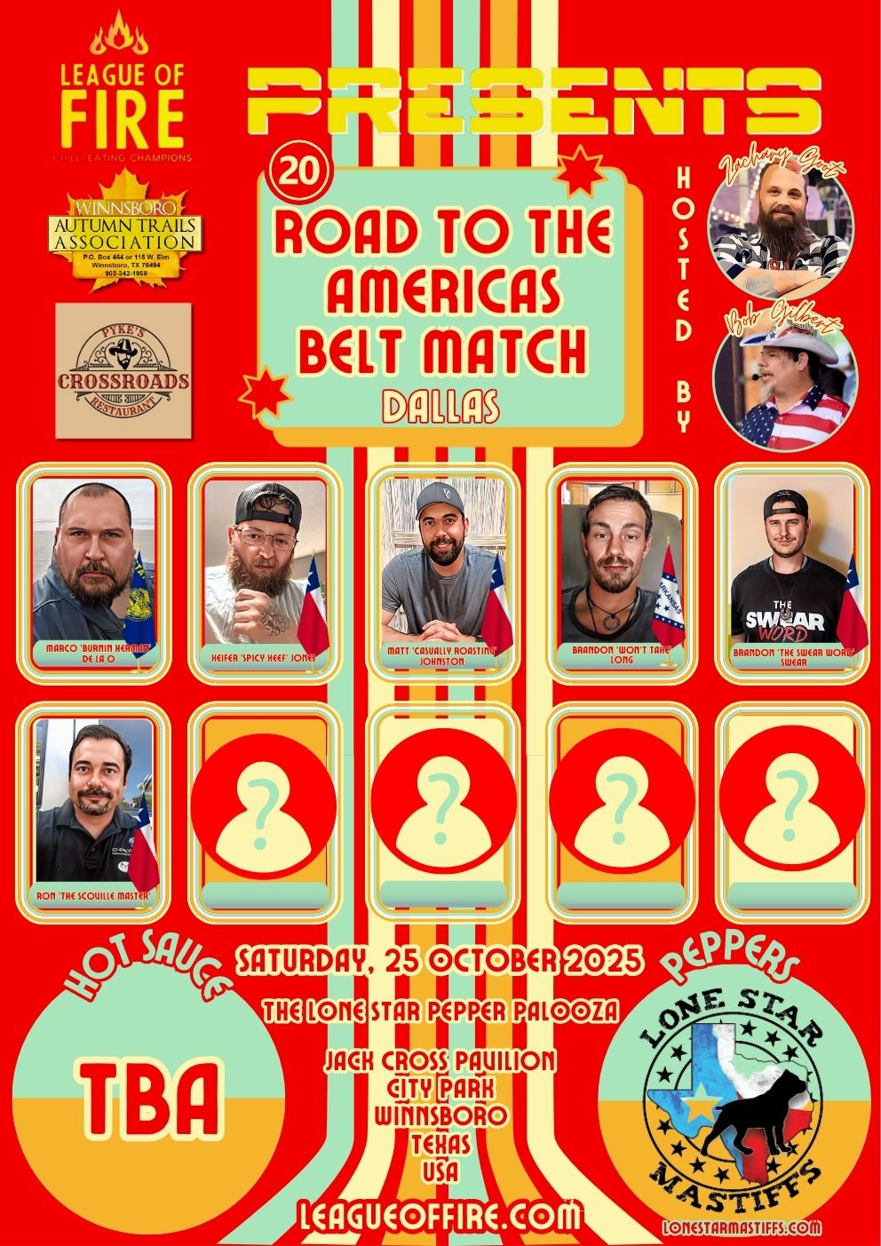 Welcome to our ‘ROAD MATCH’ Poster Gallery – a tribute to the brave athletes who entered LOF qualifying chilli eating contests!