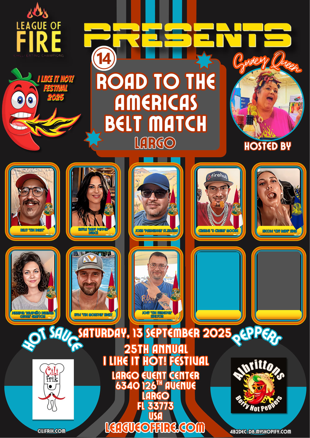 Welcome to our ‘ROAD MATCH’ Poster Gallery – a tribute to the brave athletes who entered LOF qualifying chilli eating contests!